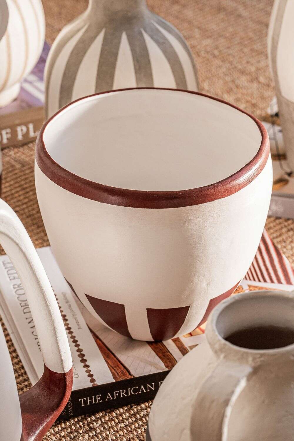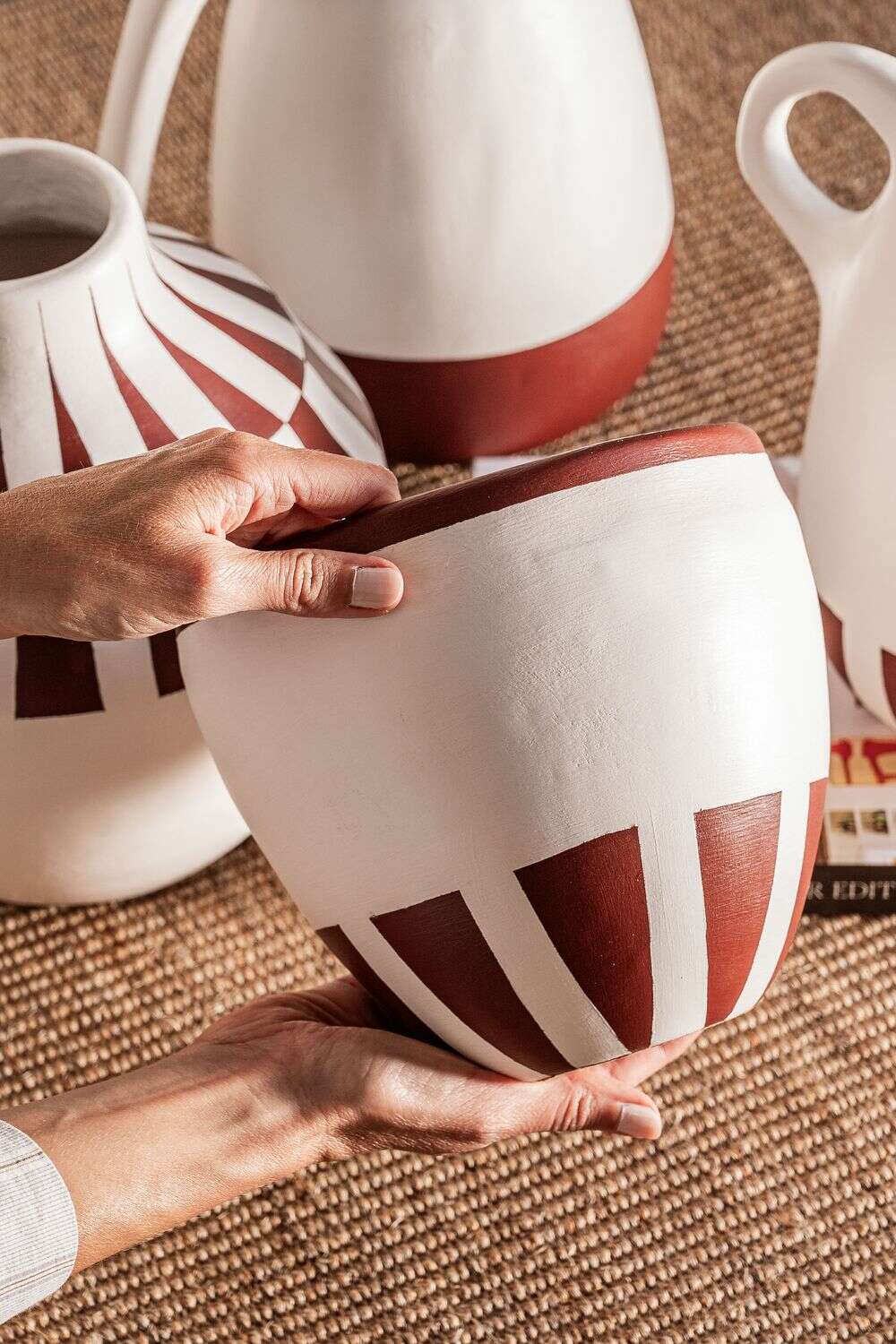 Colección de vasijas de cerámica pintadas a mano: piezas 100% artesanales fabricadas en Uruguay.