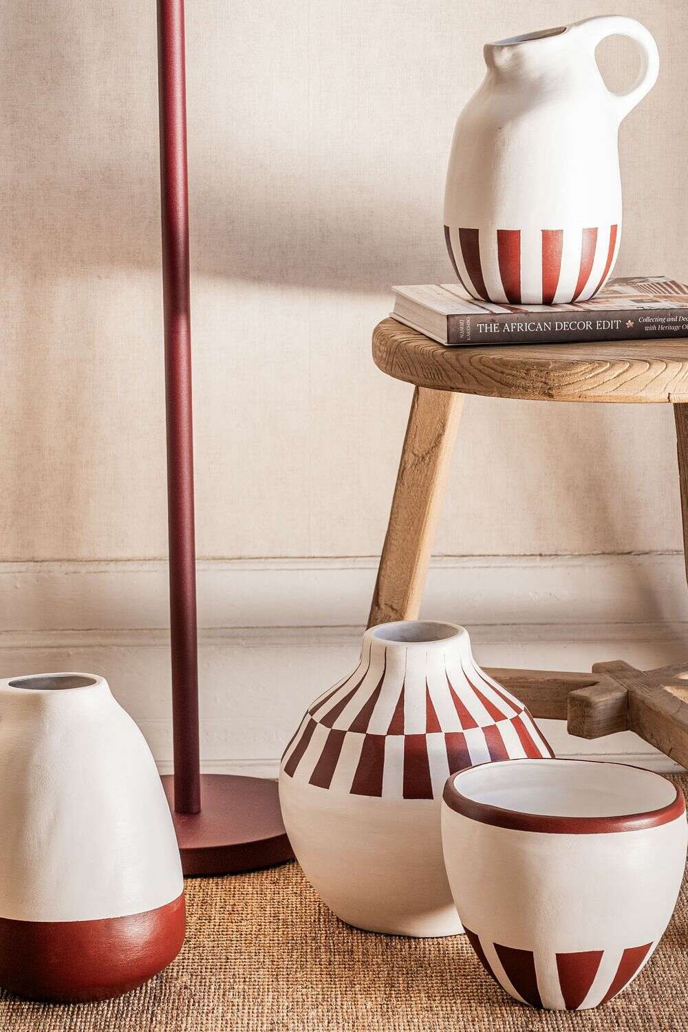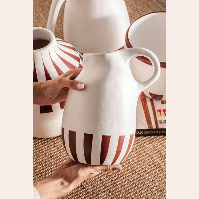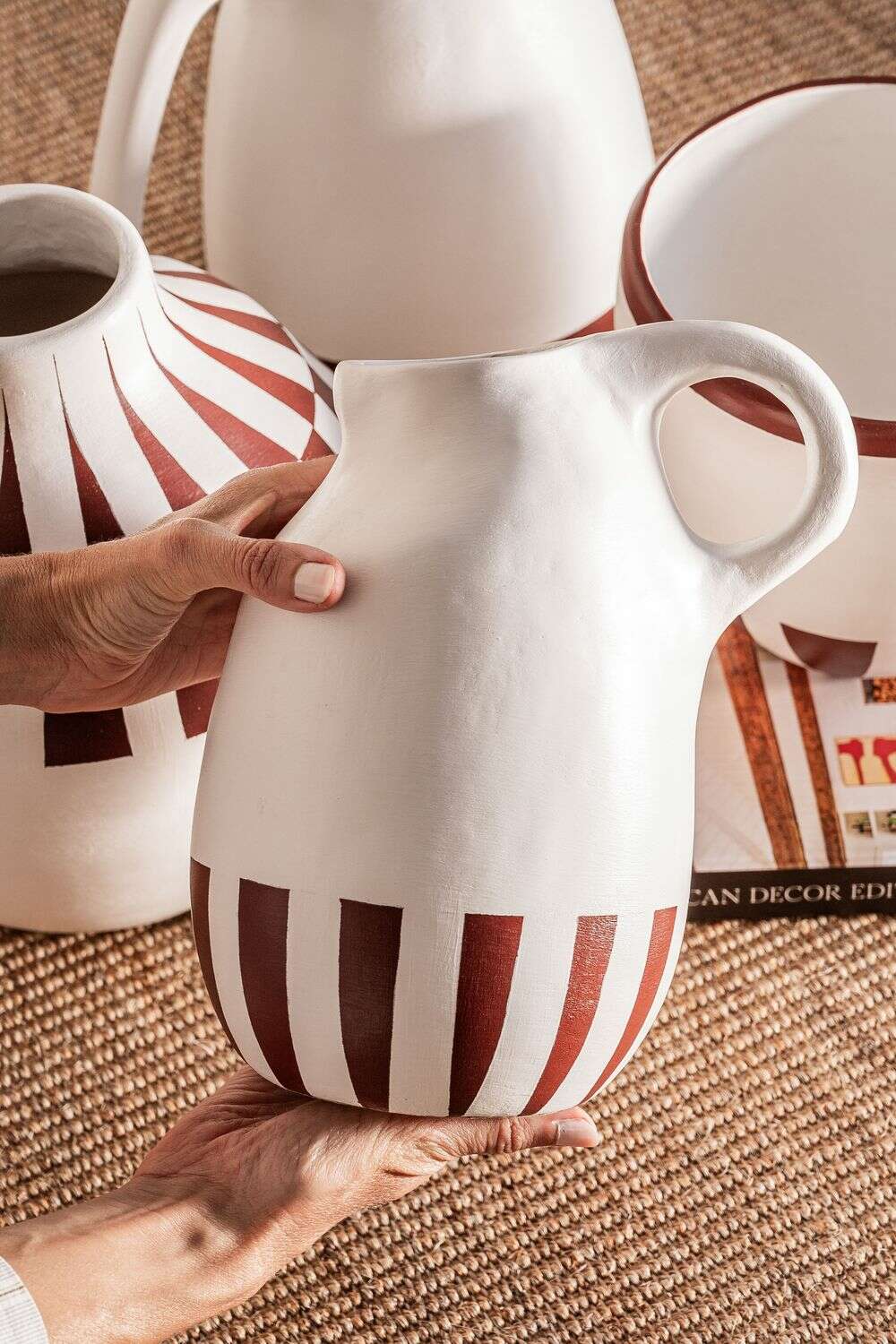 Colección de vasijas de cerámica pintadas a mano: piezas 100% artesanales fabricadas en Uruguay.