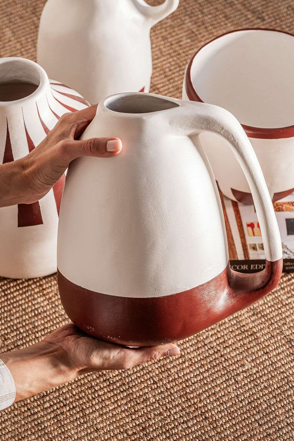 Colección de vasijas de cerámica pintadas a mano: piezas 100% artesanales fabricadas en Uruguay.