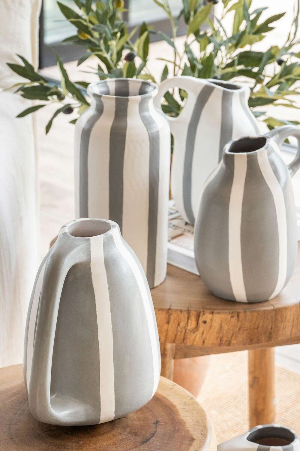 Edición limitada: colección de vasijas de cerámica pintadas a mano en estampado a rayas grises y blancas, divinas para mezclar y combinar.